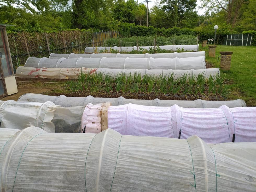In questi quattro giorni 20-21-22-23 Aprile, da sabato pomeriggio il cielo nel Lazio è divenuto minaccioso e ventoso. come previsto le temperature sono crollate e le nevicate sull'Appennino stanno mettendo a rischio tante coltivazioni di frutta. Ritorno ai miei racconti con le immagini che raccontano molto di quanto sto applicando, una lotta contro il ribasso delle temperature. I tunnel stanno dando buoni risultati, non appena le temperature come previsto dal prossimo venerdì 26 torneranno nella media del periodo speriamo di poter allestire tutti i tutori utili ad ogni tipologia di ortaggio.