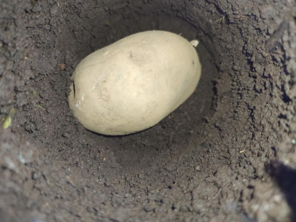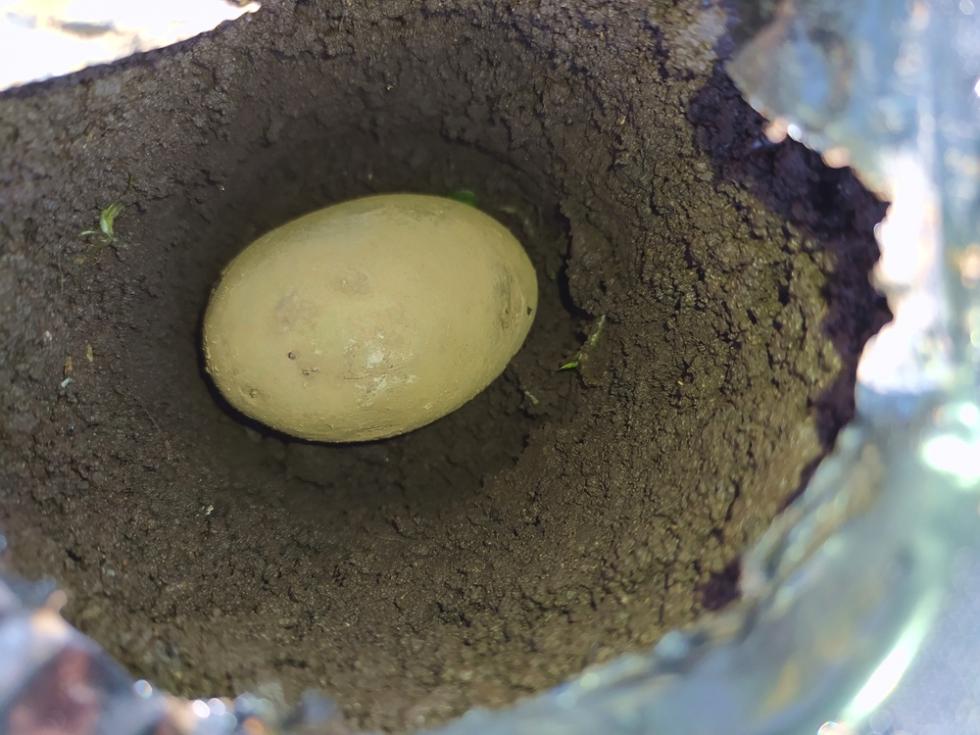 con il barattolo fustella è la terra umida al punto giusto fare le buchette per accogliere le patate è facile e rapido
