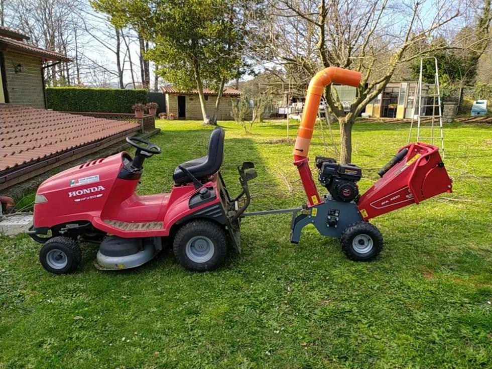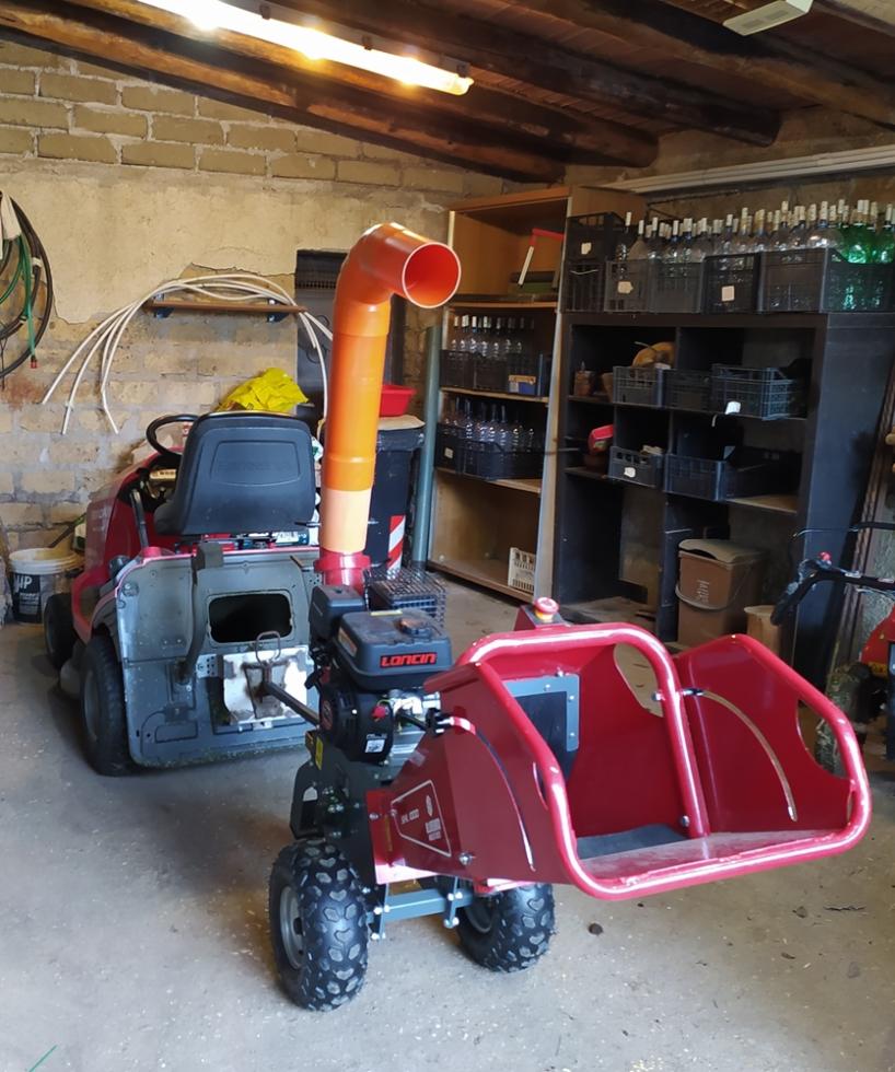 questa è una modifica che ho aggiunto io per accumulare il cippato in sacchi che poi trasporto 4-5 alla volta presso la discarica comunale che accetta la risulta di potature