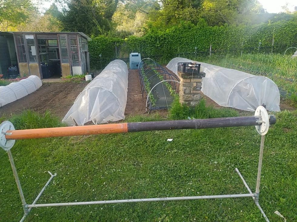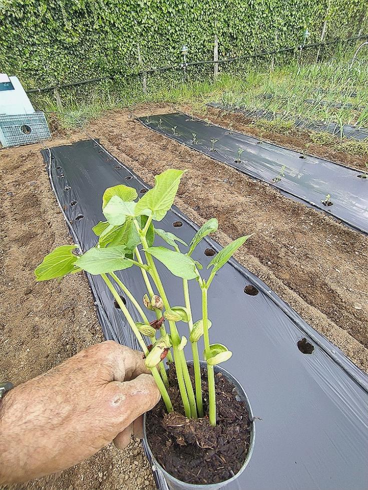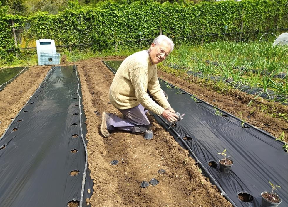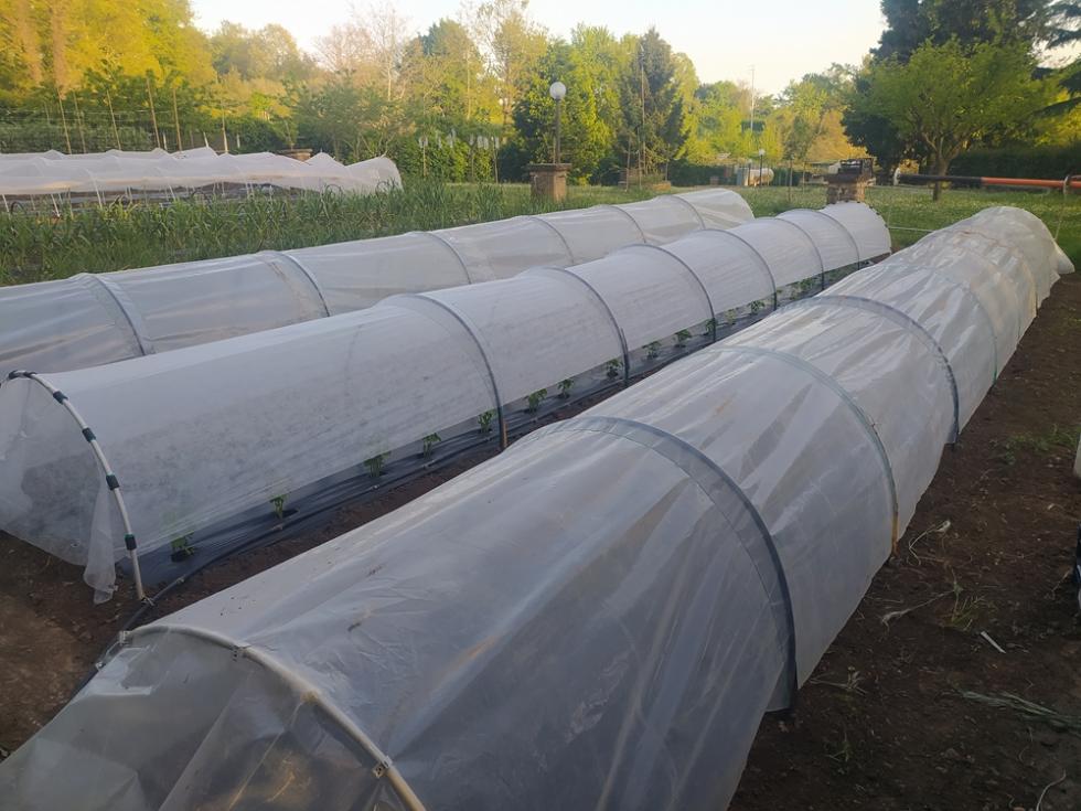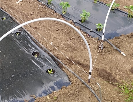 Nel pomeriggio di venerdì ho fresato arieggiato in superficie la terra e sabato ho iniziato con gli allestimenti delle prode con telo nero per completare i trapianti con le restanti piantine che erano in serra.
