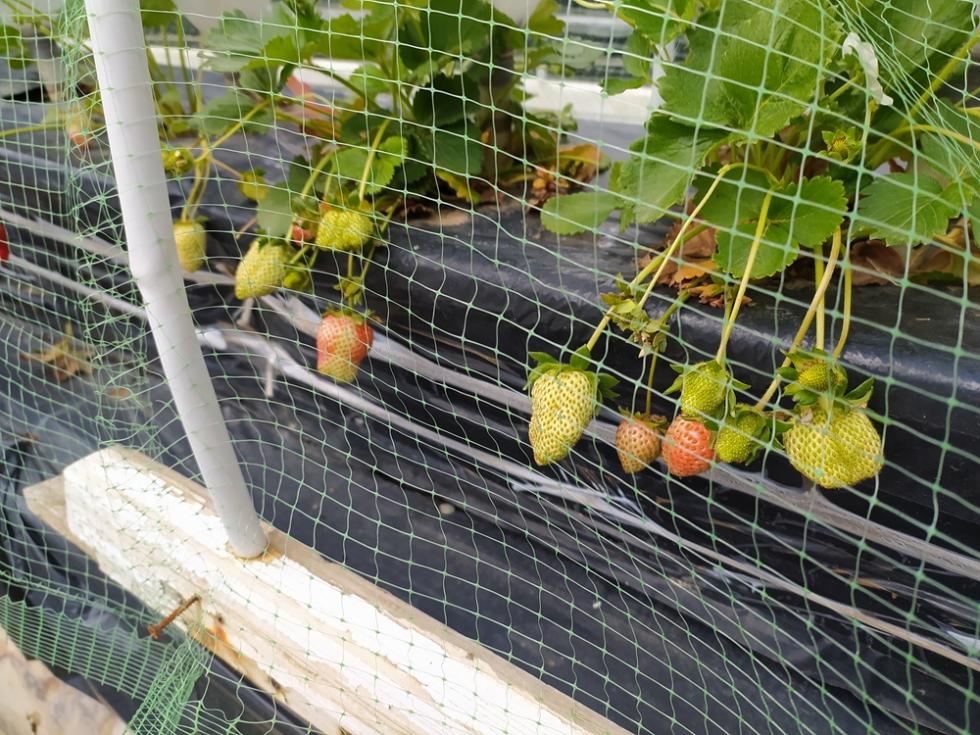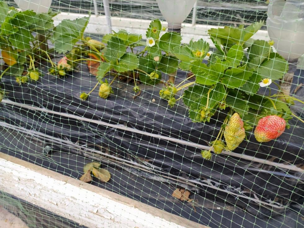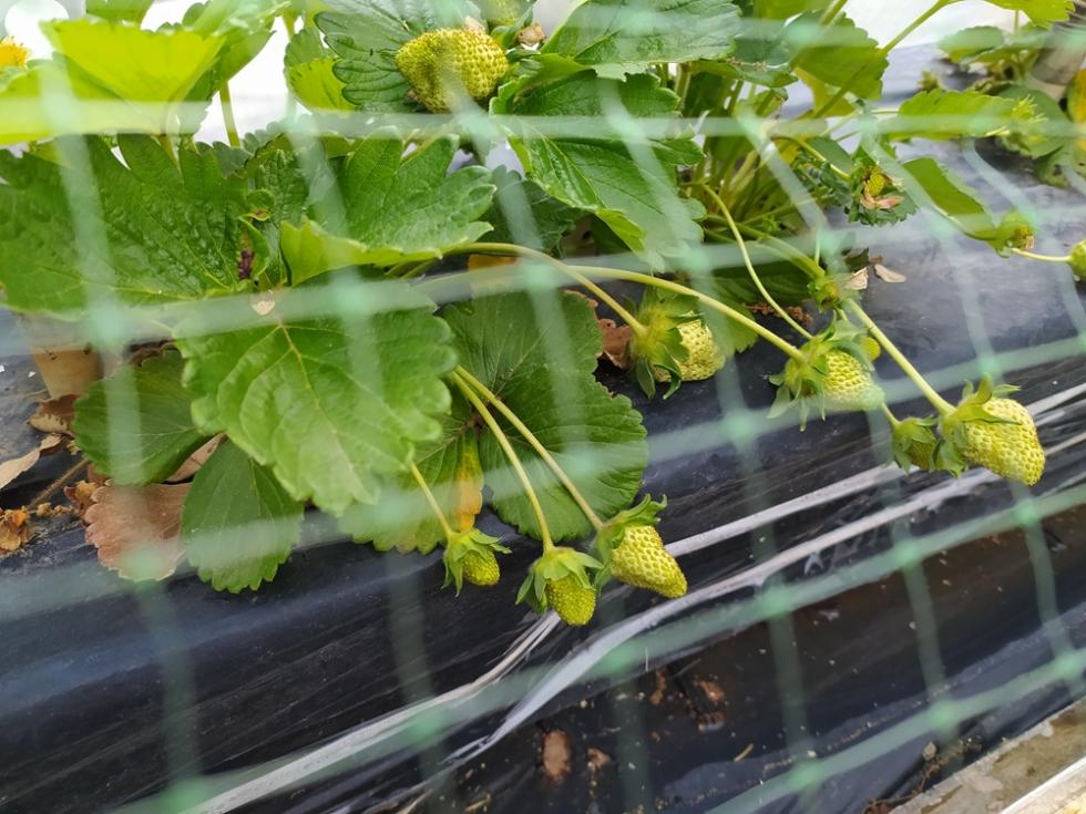 per ovviare alle visite della bellissima Ghiandaia, che è golosissima di frutta estiva devo mettere la rete antiuccello per garantire la crescita delle fragole domani devo curare le fragole togliendo le foglie quelle ingiallite al colletto