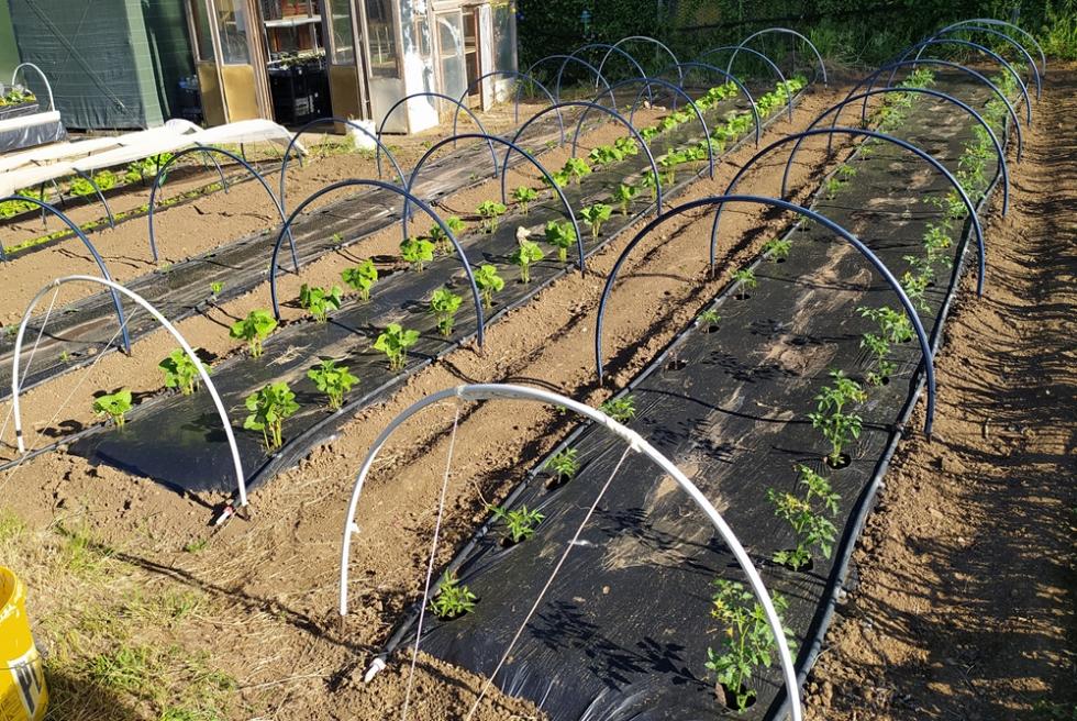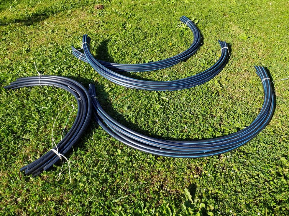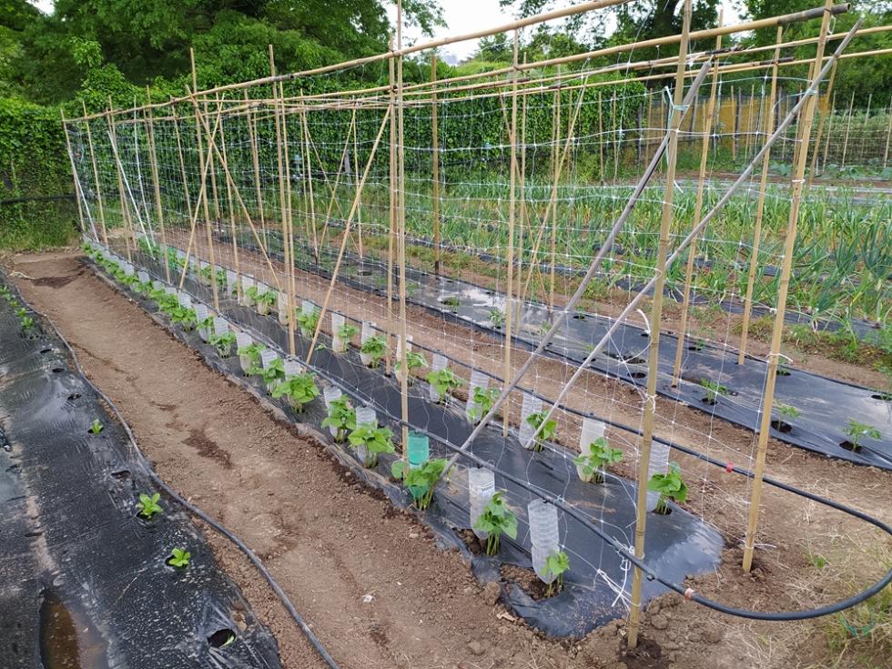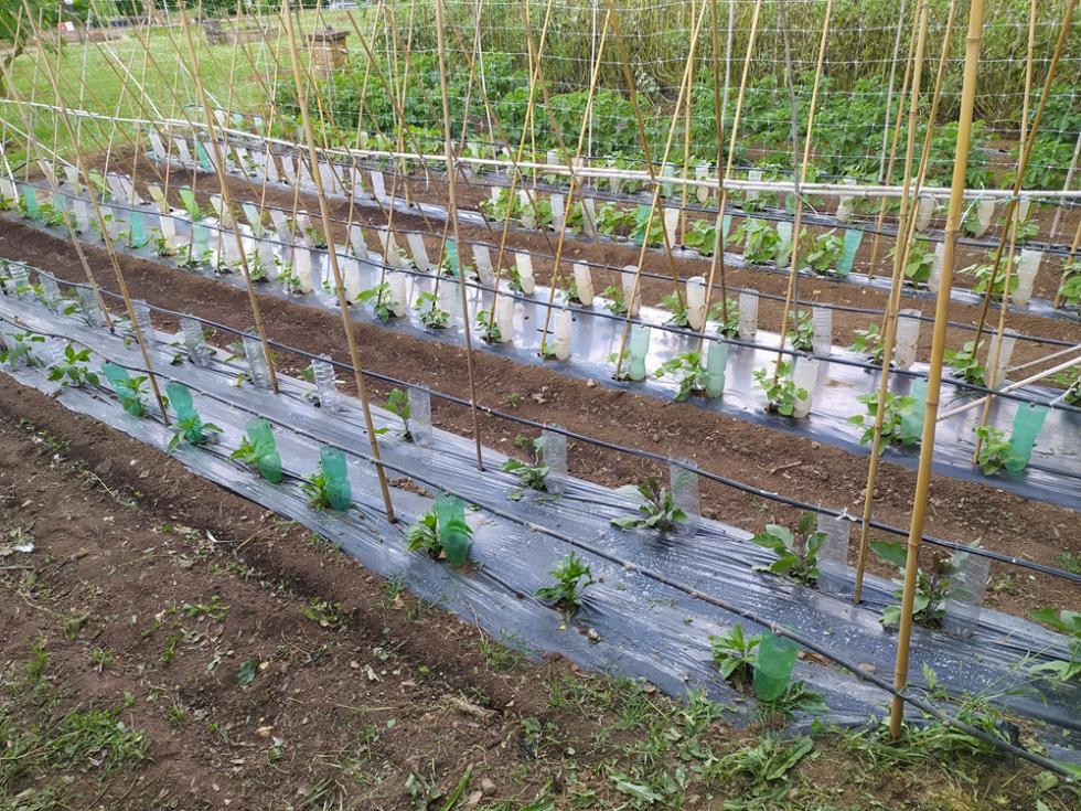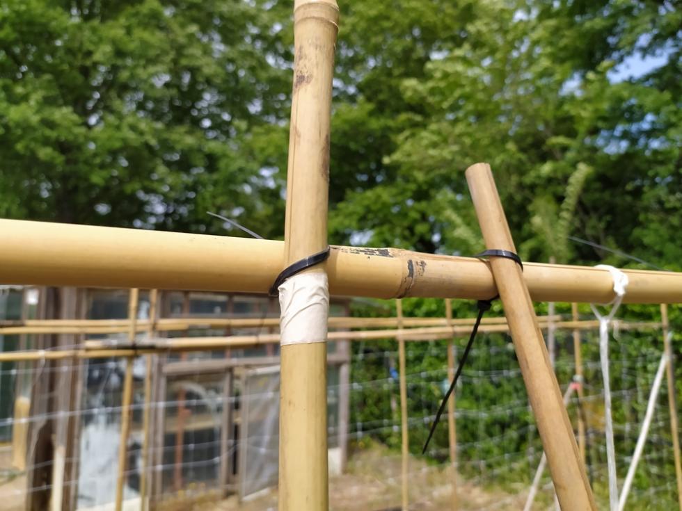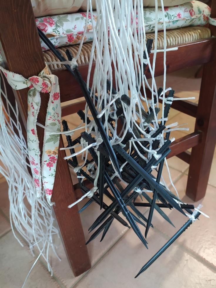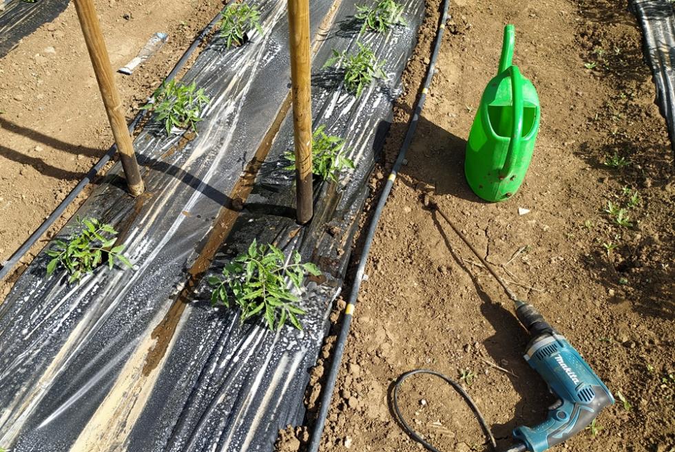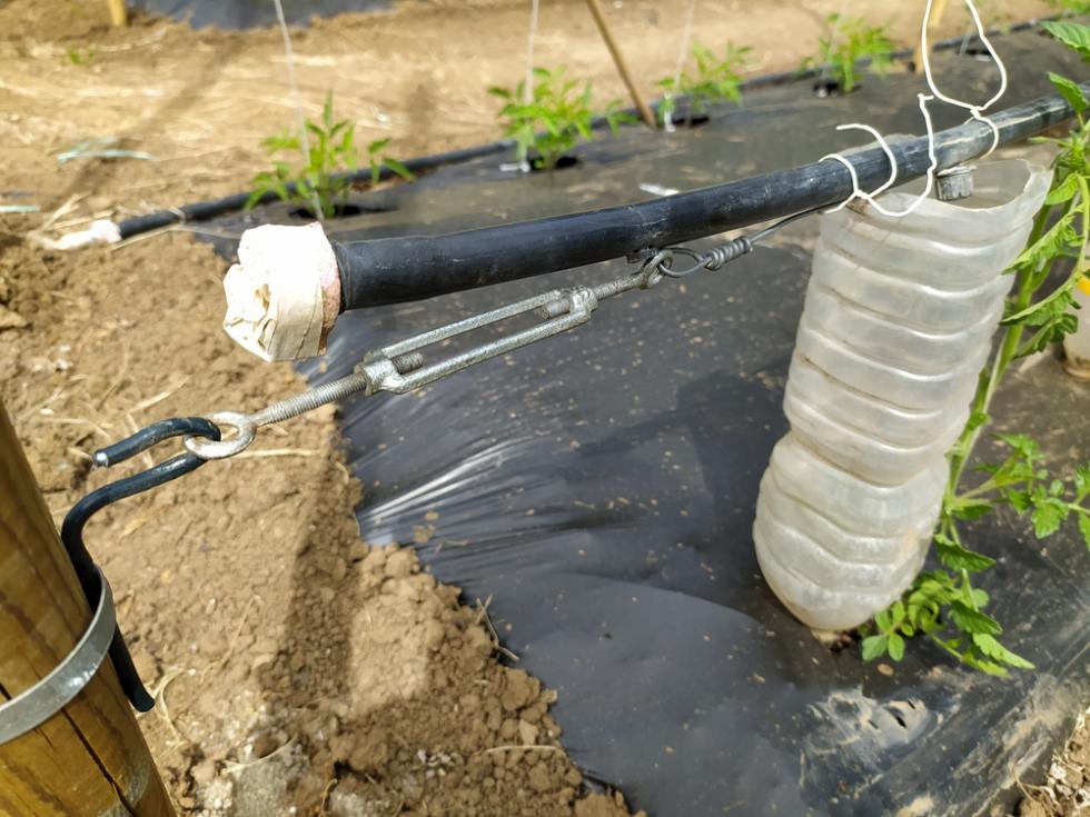con il ritorno alle normali temperature di periodo, inizia lo smontaggio delle protezioni TNT e mi organizzo per il montaggio totale delle strutture TUTORI. occorre del tempo per il montaggio, circa una settimana. il risultato di questa procedura di montaggio tutori è il risparmio di tempo da dedicare alle piante/crescita e alle irrigazioni che sono tutte assicurate e ben fissate, nel mio caso tutto funzionerà in automatico secondo timer prestabiliti.