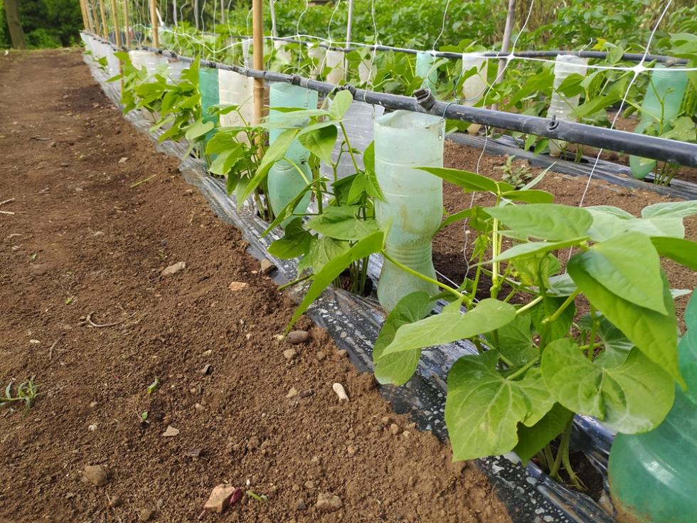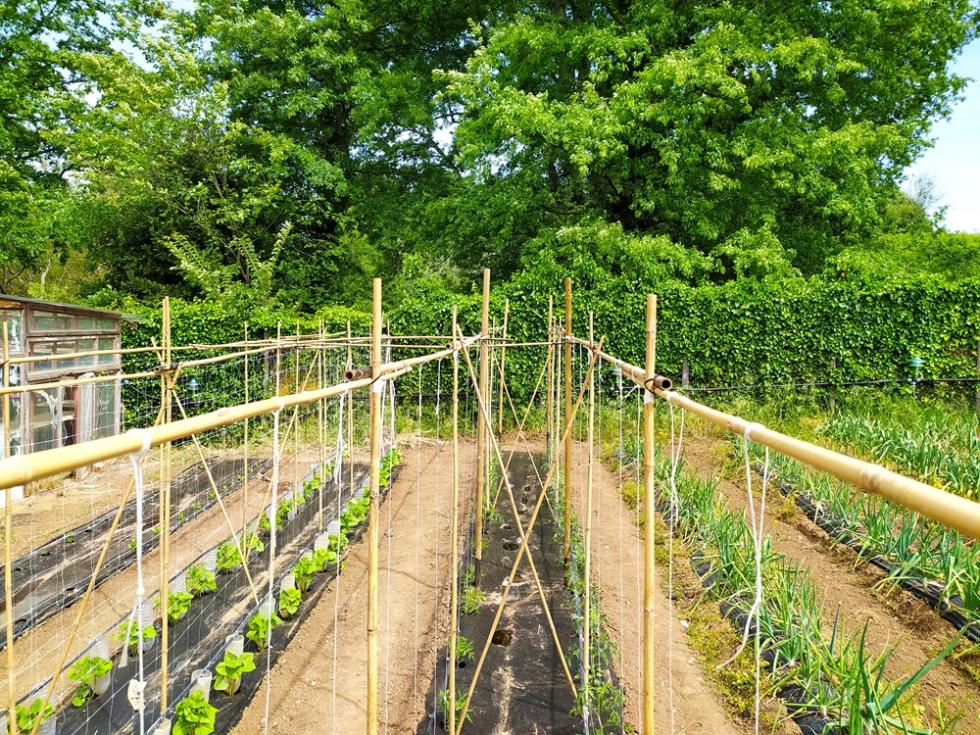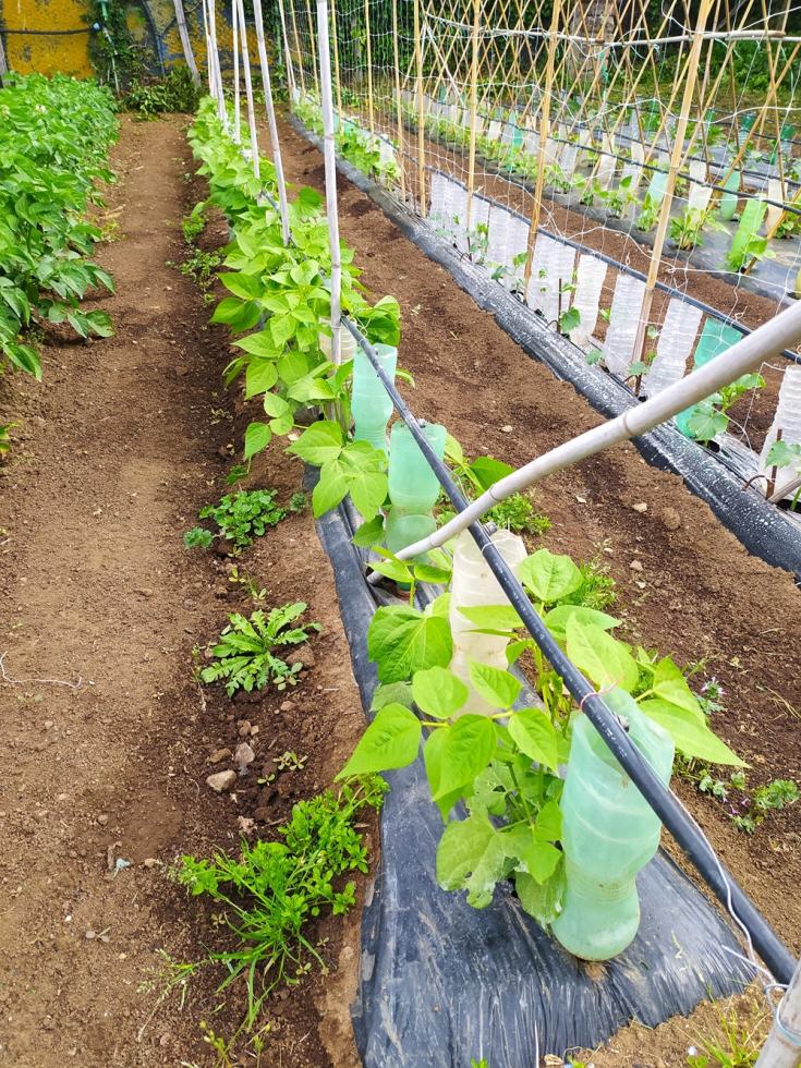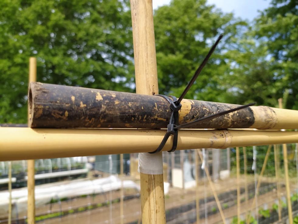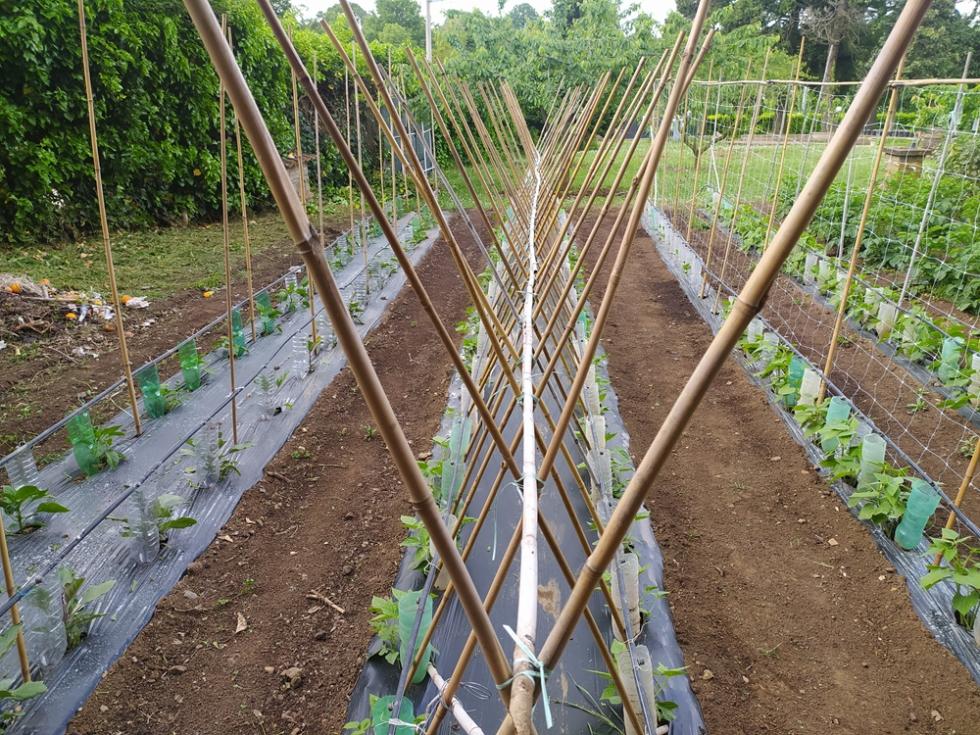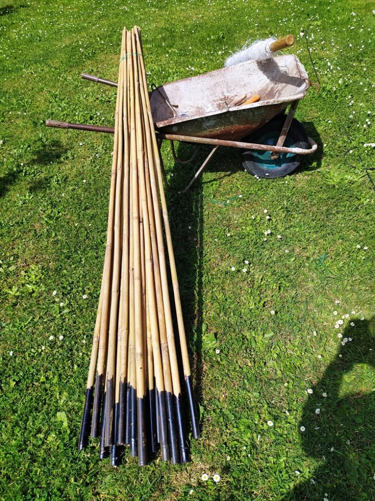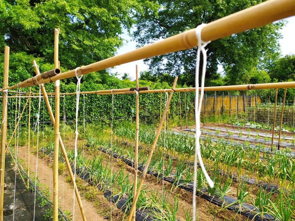 fila di tutori bambo dedicata ai fagiolini rampicanti mangiatutto