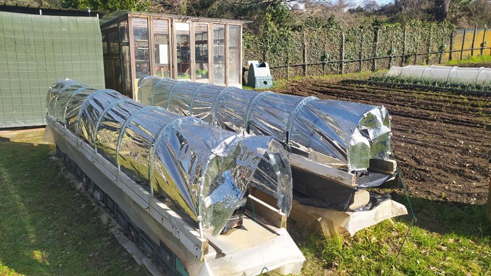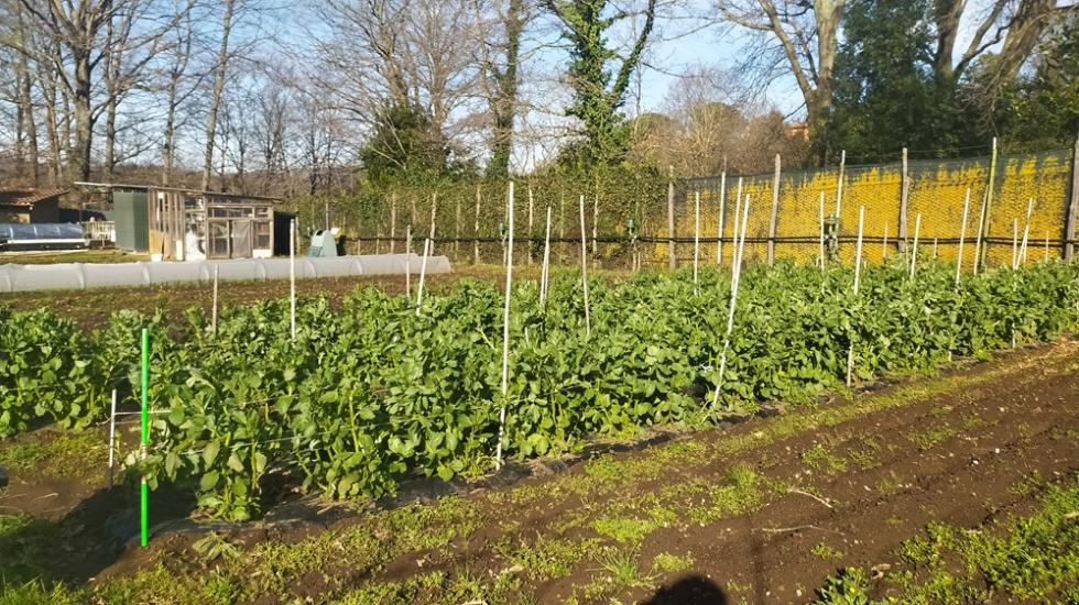 FAVE, sono già in fioritura per effetto del tunnel/telo TNT che le hanno protette della pioggia e dal freddo. il tunnel è stato eliminato al 15 di febbraio