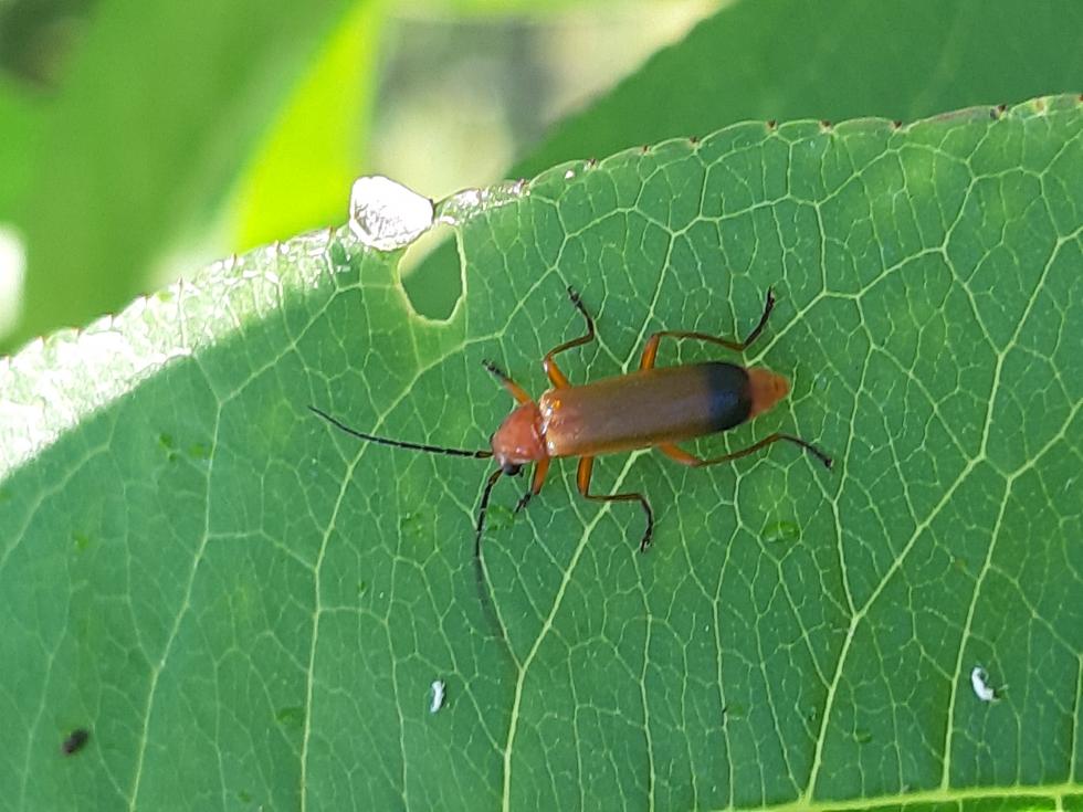 E' un Cantaride, ma se ti interessa avere la determinazione ti suggerisco, dal momento che la foto è nitida, di postarla su un forum entomologico in quanto se non si sa esattamente cosa osservare (tipo palpi mascellari, margini dello sternite, terzo segmento del tarso etc. = ho citato elementi letti in una chiave dicotomica) si va un po' per somiglianza visiva che tuttavia è molto aleatoria: io infatti quattro volte su cinque sbaglio non solo la specie ma anche genere e famiglia. Ti posso però dire che in inglese si chiamano soldier beetle per il fatto che i primi esemplari descritti avevano la livrea totalmente rossa come la giubba dei soldati inglese (red coat) fino a quasi tutto l'Ottocento e che è rimasta nei reggimenti della Guardia e in alcuni reparti di Cavalleria.