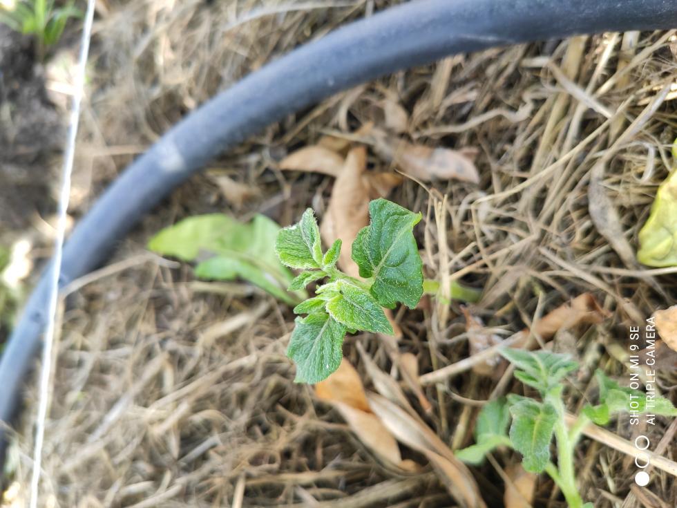 Io veramente pensavo patate, sono sicuro di aver messo molte bucce sotto l'erba. ma non avendo mai visto la pianta della patata appena nata non posso essere sicuro. grazie