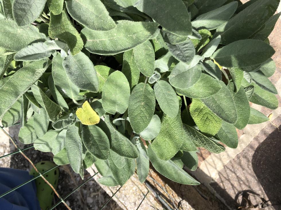 La pianta di salvia che fino a poco tempo fa’ aveva foglie di un bel verde scuro ora sta cambiando in verde chiaro e poi ingialliscono ed infine cadono