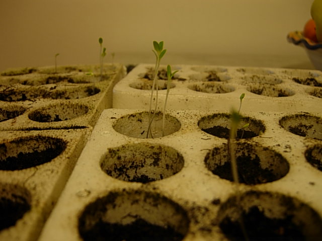 -riempio i contenitori di polistirolo (vedi foto sopra) per metà, aggiungo qualche seme, copro