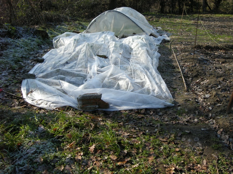 poi c'è il TNT tessuto non tessuto un velo di plastica traspirante fa alzare di qualche grado il suo interno, ma sopratutto non fa aderire la brina alle piante Allegato: