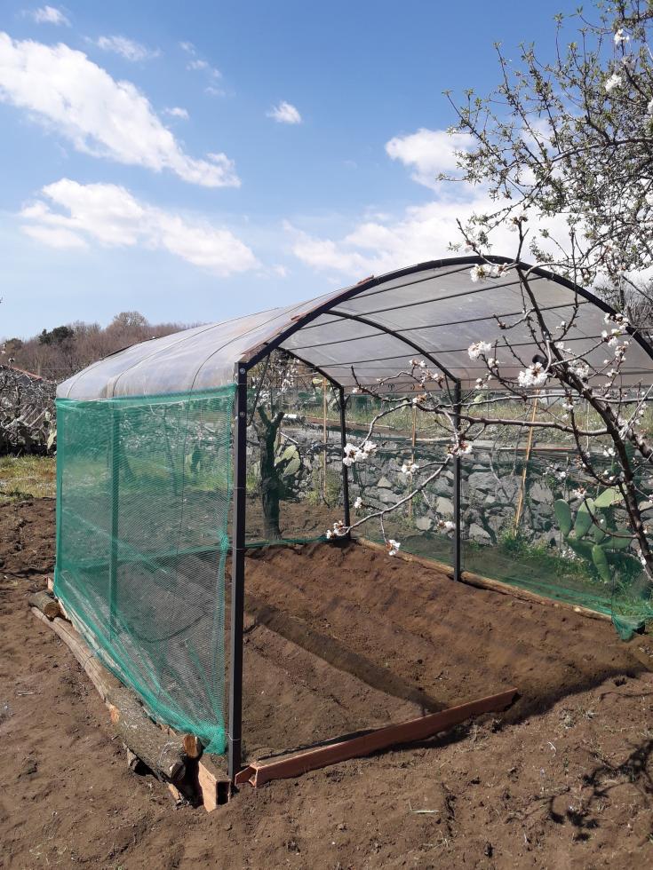 salvo1 ha scritto: Devo provare a mettere in pratica il metodo agroforestazione nel mio terreno che è vulcanico, Quindi molto drenante non mantiene l'acqua e si riscalda molto, forse dovrei cercare di fare ombra agli ortaggi con del telo frangivento. Io ho costruito delle tettoie (24 Mq, 2 metri alte) per proteggere le insalate dalla cenere dall'etna, la copertura è di vetroresina trasparente, potrei coprire con il telo ombreggiante. Questa è una delle tettoie tipo serra fredda, vorrei coprirla con la rete frangivento, oppure mettere del tetto di vetroresina di colore verde. Lo scopo è quello di filtrare i raggi solari, però la luce passa lo stesso.
