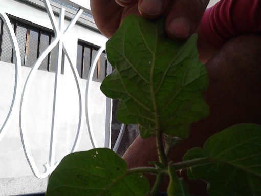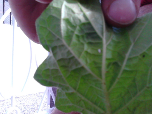 Non sono riuscito ad individuarli subito perchè si mimetizzano bene e si piazzano sul lato inferiori delle grandi foglie. Ho fatto delle foto cmq anche a quelle farfalline bianche che dicevo .... non si vede benissimo ma non mi sembra che loro stiano facendo danni ...
