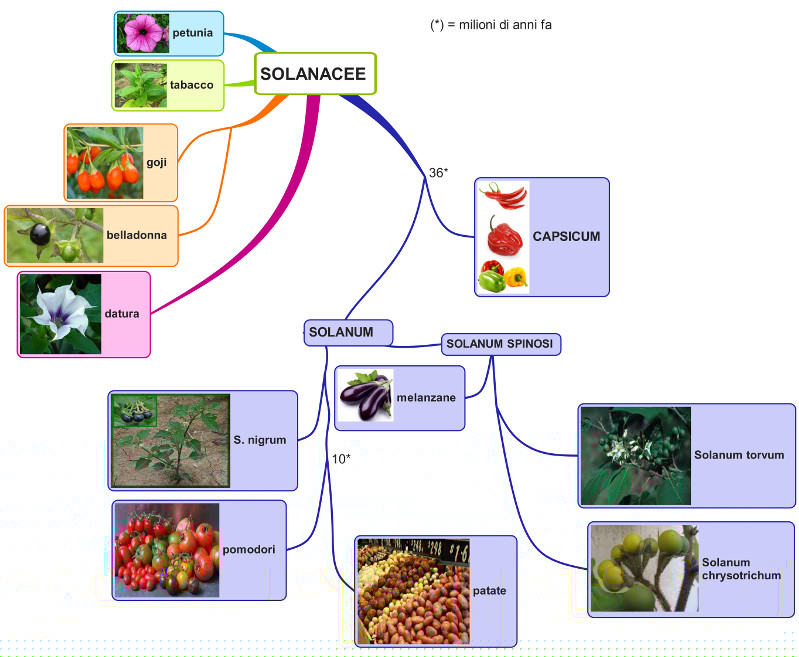 Quest'anno ho avuto modo di constatare una inaspettata affinità fra pomodori e patate, poi ho letto che era da tempo stata rilevata dagli studi dei loro geni. Sapevo che le melanzane si innestavano su tabacco (credo che lo si faccia ancora in Cina); non sapevo invece della datura come portainnesto. Nel prossimo anno proverò ad innestare su erba morella dei peperoni, delle melanzane e dei pomodori.