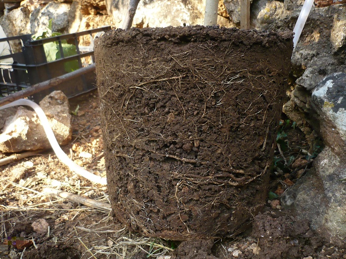 ciao ragazzi, qualche aggiornamento  oggi ho rimesso la pianta dell'anno scorso in piena terra, e da qualche settimana che i frutti ingrossano a rilento. sapevo che la pianta non va bene nei vasi per via della quantità di radici che riesce a generare, ho voluto provare nei mastelli che contengono circa 80 litri di terra arrivata a un certo punto ne risente comunque. nel mio caso avendo una pianta dell' anno scorso le radici vecchie dovrebbero generare altre radici cioè quelle bianche che si vedono in foto, queste radici sono quelle importanti per far si che la pianta sviluppi al meglio. adesso in piena terra le radici si espanderanno facendo crescere meglio la pianta.