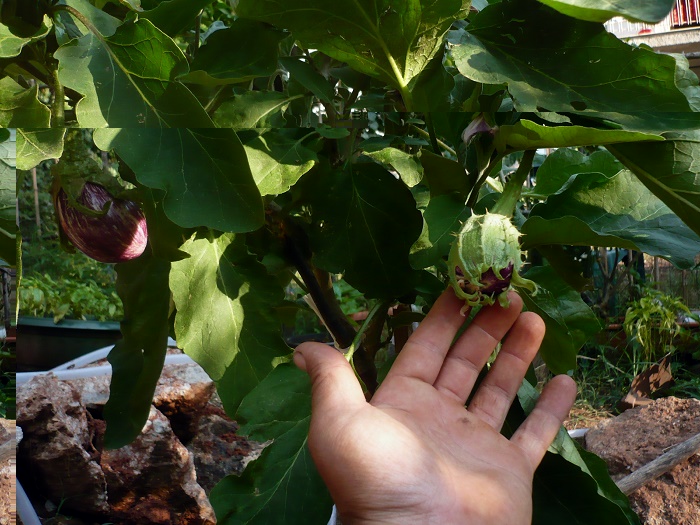 la prima foto è quella dell'ultimo innesto fatto prendendo un getto laterale da una pianta di melanzana bianca, la seconda e terza sono quelle innestate ad un centimetro da terra (copiando quelle del vivaio), queste invece, sono quelle piante nate dai semi comprati come Torvum, le avevamo individuate come Alchechengi, ora che si stanno maturando i frutti sono risultati essere dei Tomatillo, stessa famiglia ma fatti come piccoli pomodori, appena ne ho qualcuno provo a farne una salsina, sentirò come sono ciao danilo