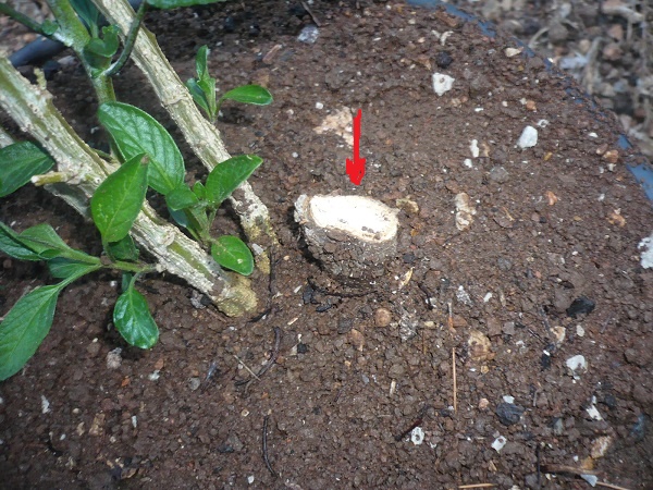 Poi, dato che le sue foglie erano piene di mosche bianche, ho pensato di defogliare completamente il chry e ci ho innestato sopra una melanzana seta con innesto ovviamente a corona: