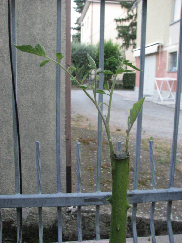 La settimana scorsa, per lo stesso motivo, ho defogliato e innestato a corona il macranthum che gli cresceva accanto, con una melanzana seta e una cinese.