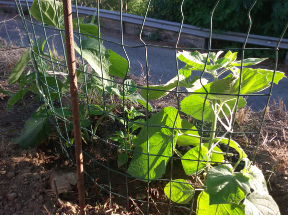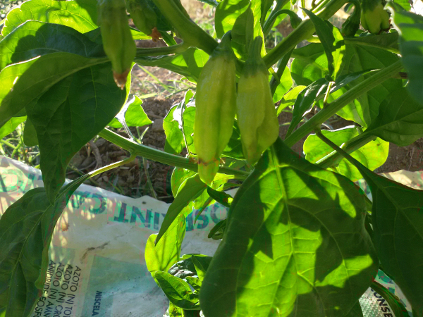 E nel piano di sotto in un piccolo spazio ho sistemato da qualche mese due physalis, un pequin ed una talea di melone pepino: