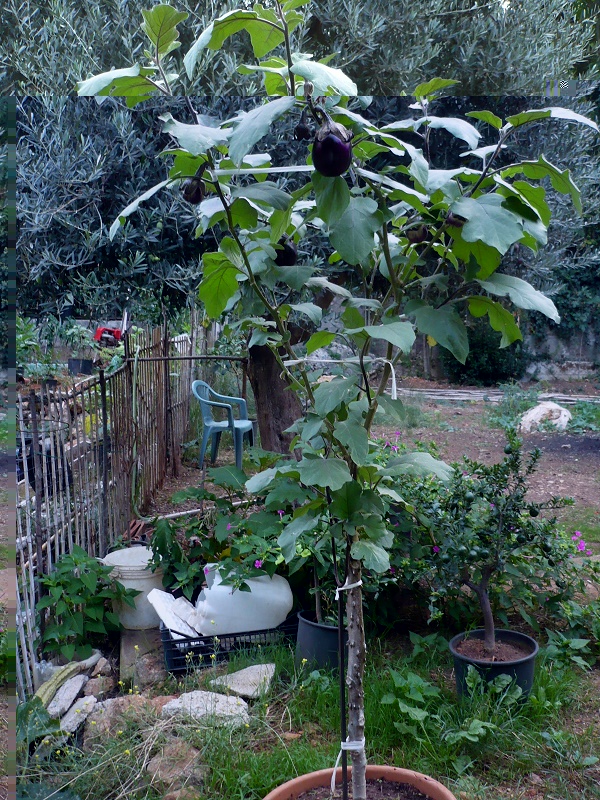 vi tengo aggiornati  situazione attuale, le melanzane stanno ingrossando  e come avevo detto togliendo le foglie si sviluppano le gemme diventando rami, questa pianta il prossimo anno diventerà molto grossa questo inverno non la lascerò esposta alle intemperie