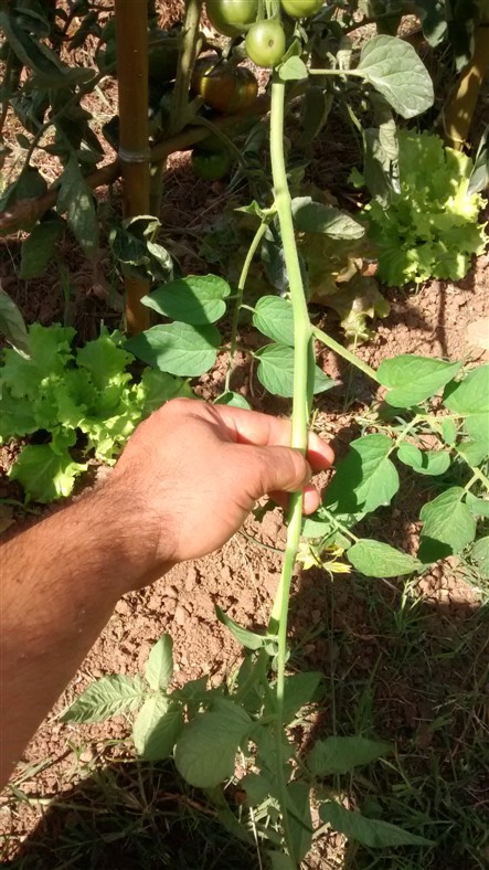 Buongiorno. Stamattina, dopo una nottata molto ventosa, sono andato in ricognizione nell'orto. Tutto in ordine ma...il vento ha fatto saltar fuori una femminella che mi era sfuggita. La cosa strana per me neofita e che questa femminella è una continuazione di un grappolo di pomodoro camone innestato. E' normale? La tolgo? Grazie.
