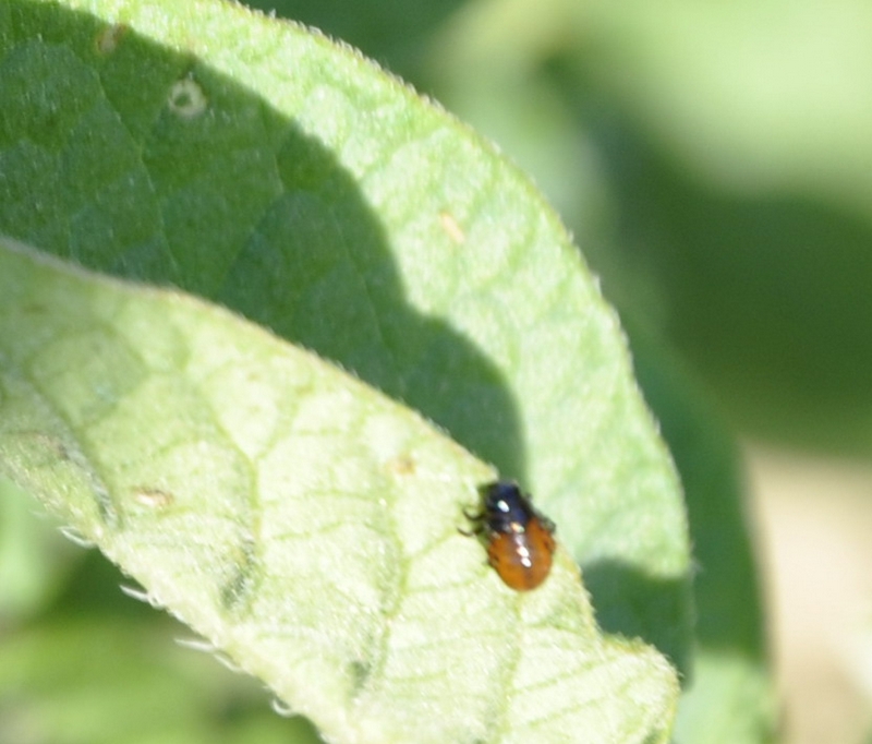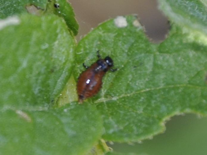 Questo è l'adulto con le uova, sulla pagina inferiore della foglia: