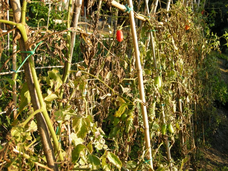 Seconda morale: se continua così, fra un mese/un mese e mezzo non avrei più pomodori nell' orto perché sono già tutti maturati e raccolti. Inoltre le piante entreranno presto in senescenza (anche le piante diventano vecchie...), con tutto quello che ne consegue.