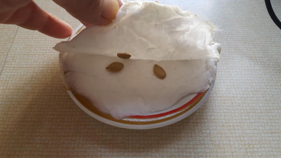 Nell'attesa di un miracolo con la precedente semina , provvedo a recuperare l'ovatta per i semi di zucca e zucchino .