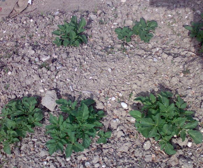 la prima nella stessa zona/terra, piantate senza alcun concime una settimana prima delle mie ... sembrano più stentate, le piante sono cresciute meno, quasi in ritardo rispetto alle mie interrate una settimana dopo ...
