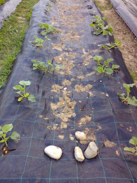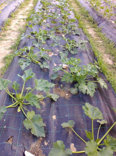 le zucchine appena trapiantate soffrono e la loro colorazione non è bella. si riprenderanno presto.