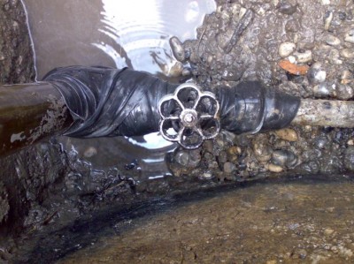 Riparata pompa ... grossolanamente, provvisoriamente via camera d'aria ... due perdite una sotto al manicotto T ed una dal manicotto verso il tubo interrato ... un cero colabrodo ...
