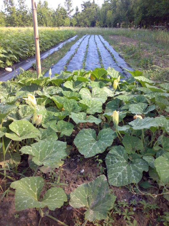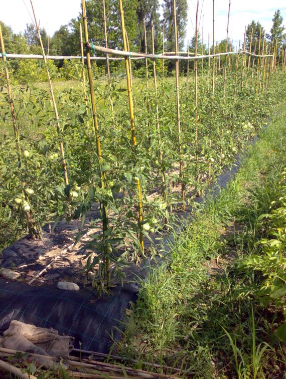 Ho esagerato con le file, piuttosto le solite 2 ne ho messe 4 sperando che il telo (l'acqua trattenuta dal telo) permetta comunque la crescita, in teoria si sostengono l'un l'altro, ieri il vento era pazzesco eppure son tutti lì in piedi senza nessuna foglia gialla e pulitissime grazie al telo.