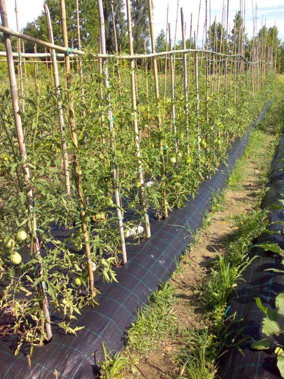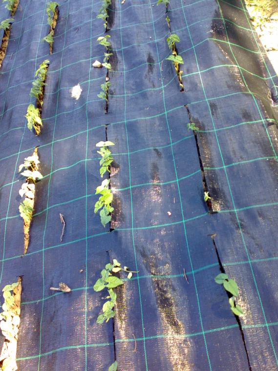 Ho esagerato con le file, piuttosto le solite 2 ne ho messe 4 sperando che il telo (l'acqua trattenuta dal telo) permetta comunque la crescita, in teoria si sostengono l'un l'altro, ieri il vento era pazzesco eppure son tutti lì in piedi senza nessuna foglia gialla e pulitissime grazie al telo.