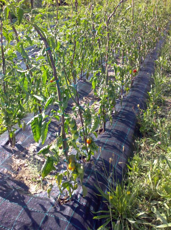 I pomodori anche questo anno sono stati un disastro, il fusto risulta esile, molto allungato e sembra legnoso ... il risultato è una pianta con poche foglie, non particolarmente estese,colore verde chiaro(solo mancanza di ferro?) e pomodori di mezza misura rispetto a quelli coltivati lo scorso anno nell'orto di casa ...