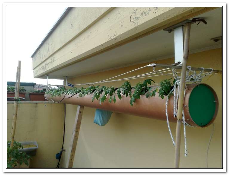 LA qualità dei pomodori è la Tumbling Tom e ho alternato piante a frutti rossi e a frutti gialli. I tappi laterali si tengono con delle viti ed è facilissimo rimuoverli. Il problema è sfilare la terra dal tubo che peserà più di 100kg senza fare un disastro sul terrazzo. Comunque l'anno scorso ho fatto anche un tubo di pomodori idroponici, se siete interessati posso postare le foto. Lorenzo