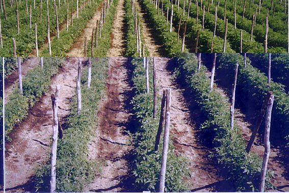 Pioppino, la tua architettura di canne la trovo molto carina. Però, guarda il campo sperimentale della Cirio nella foto sotto. Il tuo sistema penso sia soddisfacente realizzarlo, ma che non sia tanto affidabile e nemmeno efficiente. Come potresti arieggiare il terreno sotto quele canne? Immagino anche che ci siano difficoltà nella raccolta...Pensa se di dovesse realizzarlo per duemila piantine... Qui la fonte della foto allegata: http://www.sito.regione.campania.it/agr ... o_2004.pdf" target="_blank