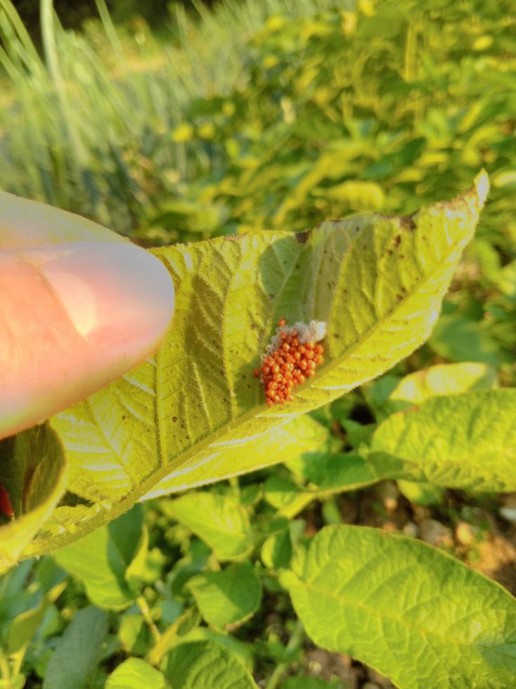 Dorifera! Se ci sono le uova ci sono anche le maledette e i loro famelici cucciolotti: http://www.agraria.org/entomologia-agra ... patata.htmIo l'anno scorso le avevo sulle melanzane, devi schiacciare o affogare in un contenitore con dell'acqua gli adulti e schiacciare le uova. L'anno venturo dovrai cambiare la coltura perchè si ripresenterà sicuramente.