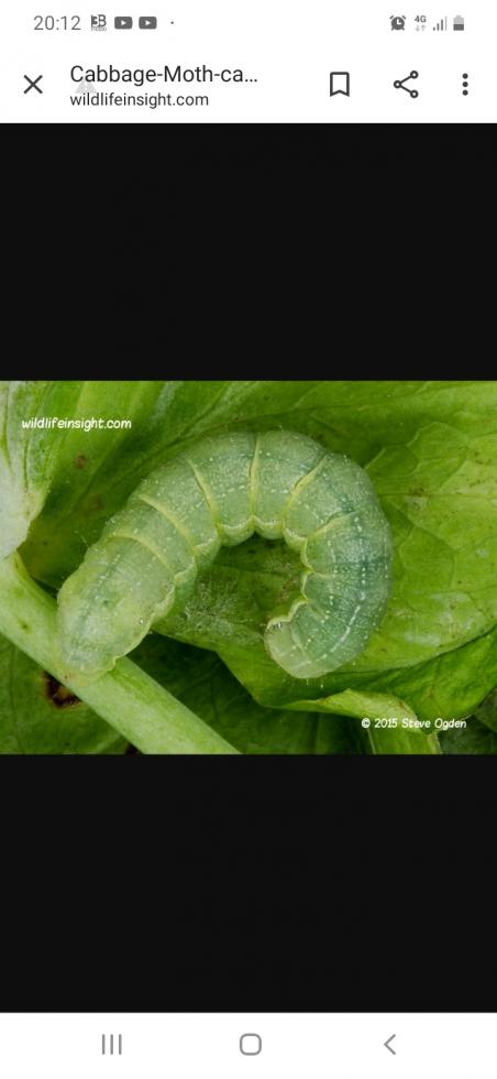 Proseguono le sfighe con i cavoli. Come vi dicevo per evitare il problema cavolaia avevo fatto delle mini serre a tunnel col tnt ma ciò sembra non essere bastato infatti oggi ho appurato la loro presenza in almeno 3 tunnel (forse l'unica indenne è quella con i cavoli neri). In un caso ho visto una larva mentre nel resto il risultato della sua furia. Viò che non mi spiego è come abbia fatto a depositare le uova dato che prima di installare il tnt avevo controllato meticolosamente che non ci fossero nidiate. Ecco una foto della situazione ed un'immagine scaricata da internet della larva incriminata ( penso nottua ) fedele alla larva che ho eliminato