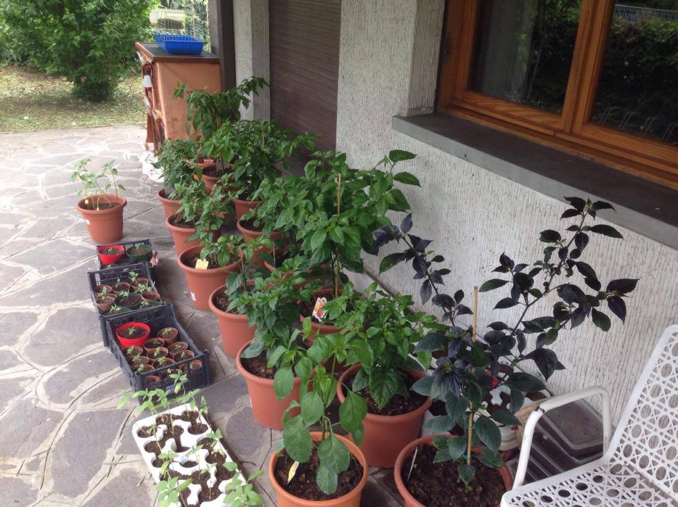 Ecco i miei peperoncini in vaso. è la mia prima esperienza che ne pensate ? Per ora nn anno ancora legato ma le piante sembrano belle robuste. Non vedo l'ora che le temperature inizino a permettere l allegatura. Le piante sono abbastanza gorsse per permettere dei frutti di normale grandezza ?