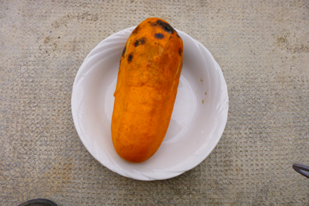 le foto del frutto sono queste che ho fatto,non so quando torno dalle parti dove ho raccolto questi frutti,quelli non caduti penzolavano da una pianta simile alle piante delle zucche ma erano troppo in alto per vedere completamente la pianta,non li ho assaggiati ma il profumo era tropicale tanto per capirci ma forse perchè troppo maturi,non so, neanche io ho mai visto un tortarello o simili maturo cosi,comunque tengo i semi e il prossimo anno li pianto.