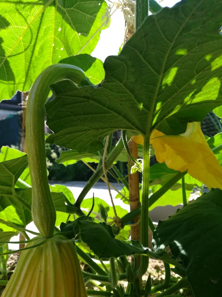Fanno i fiori tutti i giorni, sono anche giganteschi, per cui li vedo sicuramente, e non fioriscono mai quelli maschili, quindi OVVIAMENTE non ho impollinato, come invece faccio di norma con le zucche . Comunque le le sto cimando in questi giorni perché hanno raggiunto una certa lunghezza. Una l'ho cimata quando era ancora corta e comunque manco quella fa i fiori maschili.