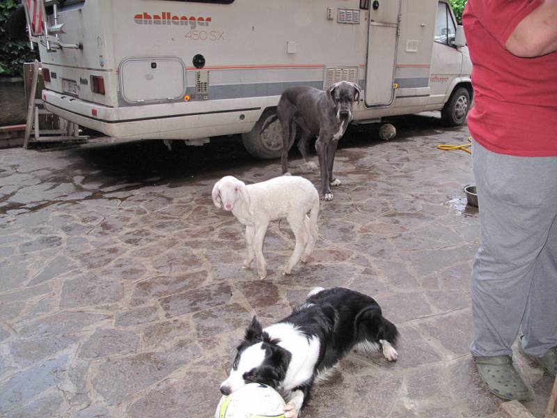 Grazie Francesco, in effetti si sta "allargando" un po' troppo e io tendo a dimenticare che diventerà circa 70-80 kg. di pecora .... Eccoti le foto, non sono molto professionali ma ti fanno capire quanta fame ha Dolly e quanto è fulimnata la mia border che preferisce la palla all'agnello! Poi ci sono anch'io, ma l'agnellina è moooolto meglio! Grazie per le dritte. Milena