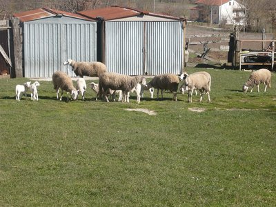 avevo la memory carsd piena e sono riuscito a fare solo questa foto,il montone non c'è perchè mia nonna lo aveva venduto 2 giorni fa,quasi ogni pecora ha con se 1 o più agnellini,non si vedono tutti,metterò altre foto appena possibile