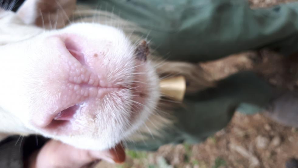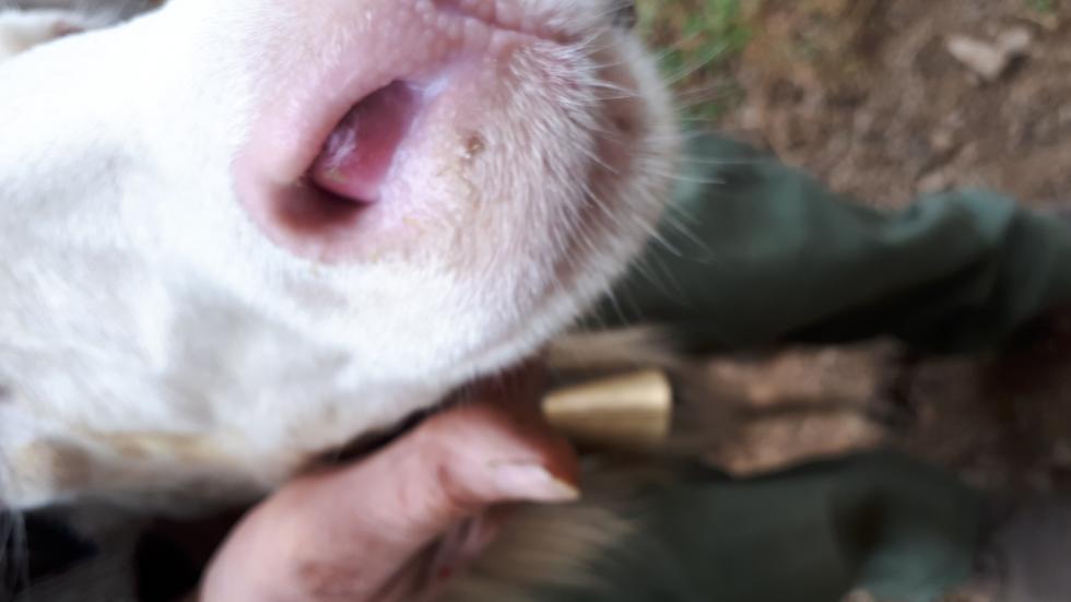 Si, abbiamo contattato il veterinario e abbiamo anche già fatto la cura. Quelle protuberanze nelle narici sono sparite, pero la pecora è ancora raffreddata, non è ancora completamente guarita.