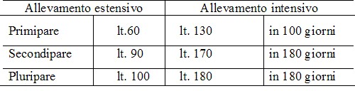 produzione latte primipare di razza sarda