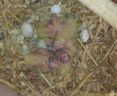 Ho solo questa coppia dal 2008 ma questa e la prima nidiata che portano avanti ,ho provato ha farli riprodure fino al 2011 senza successo dopo tre anni o pensato di riprovarci ed ecco che quasi ci siamo non voglio cantar vittoria perche e presto io cerco di non fargli mancare niente.