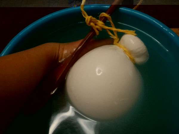 Ciao Muesli....complimenti per la caparbietà. Ci dici che procedura hai usato...e a quanti gradi hai filato? Per la testa, quando hai formato il "sotto" del caciocavallo ed inizi a fare la chiusura.... tieni vicino a te acqua bollente, dove immergerai la parte finale pochi secondi, cioè la testa che vuoi creare, poi per non sformare a ditate il tutto, immergi solo il corpo nell'acqua fredda... cioè dove hai fatto la foto, e inizia a formare e chiudere la testa, se una volta non bastasse immergi di nuovo in acqua bollente e di nuovo in acqua fredda solo il corpo e fai la chiusura....