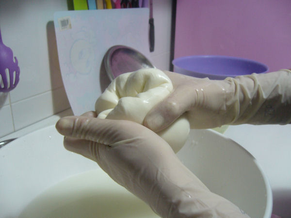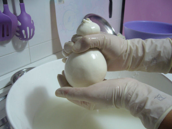 Lavoro per un pò di minuti e poi inizio a dare la forma al caciocavallo.