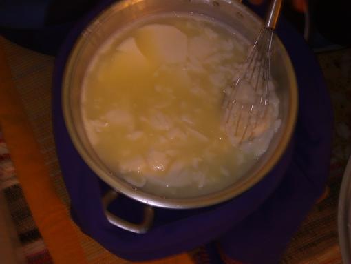 Un saluto caloroso sempre a tutti. Rieccomi nella mia prima esperienza con la mozzarella.....un vero disastro tanto lavoro per buttare il tutto Ho seguito la ricetta di Argan alla lettera ( o quasi) ma a quanto pare ho fatto degli errori. Quantità di latte 6 litri, 250 ml di yogurt, 3ml di caglio liquido 1:10000 ( 1ml in più di argan, Perchè? Parere di un amico che lavora nel caseificio - Forse geloso ha voluto silurarmi ) Porto il latte a 38° aggiungo yogurt, dopo 10 minuti caglio diluito con un pò di acqua leggermente tiempida mescolo bene e chiudo con coperte per 45 minuti dopo faccio la 1 rottura a quadroni lascio fermo con coperte per 15 minuti e rompo a noccioline o quasi, trasferisco la pentola a bagnomaria 40° e controllo che il siero stia a 35° confermando che ogni circa 30 minuti il siero veniva controllato constatando la temperatura di circa 35/37° dopo 2,5 ore provo la filatura ma sembra che non fila la mozzarella non si accorpa e nel filare si spezza, l'acqua era a 85/90° quindi lascio ancora 30 minuti riprovo ma con lo stesso risultato allora penso che sia troppo presto e lascio per ancora 2 ore per un totale di 4,5 ore, stanco (vista l'ora e le ore di lavoro circa 7 continue tra mozzarella e primosale) esco la cagliatta la metto a scolare (ma mi accorgo subito che qualcosa non ha funzionato-istinto  ) taglio a pezzi simili e provo a filare con acqua a 90°, nulla ho provato addirittura con le mani ma niente dalle foto potete notare il risultato.... Spero di fare meglio la prossima volta, ma sono davvero scoraggiato per la mozzarella, per l'eccessiva mole di lavoro che comporta si fa prima a comprarla e dedicare il tempo in altre preparazioni sermpre casearie. P.s. notare nel primo taglio a quadri la formazione del vortice al centro, è normale?