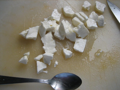 ore 12.40 secondo taglio della cagliata in pezzi piccoli. Peso cagliata 460 gr. Allegato: