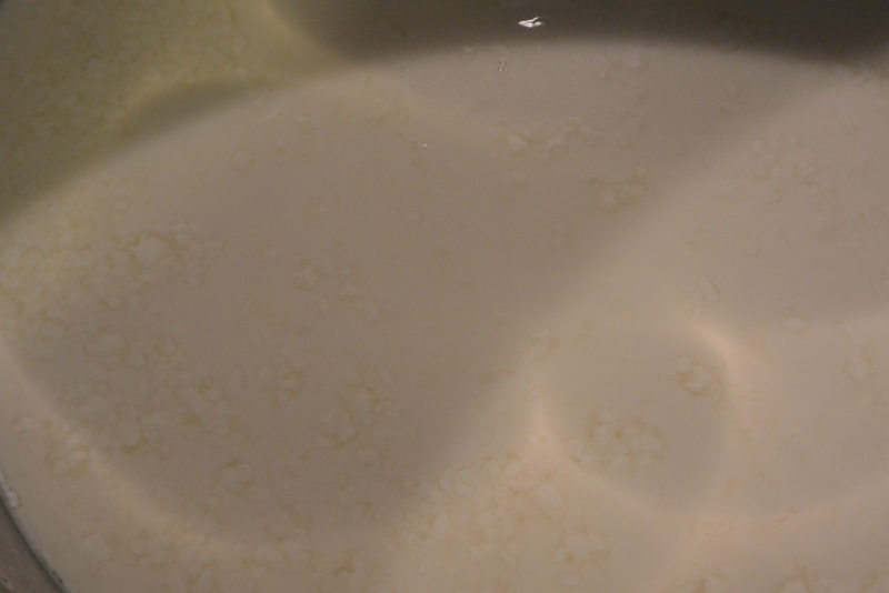 inizia a far bere la cagliata mescolando non cercando di unirla