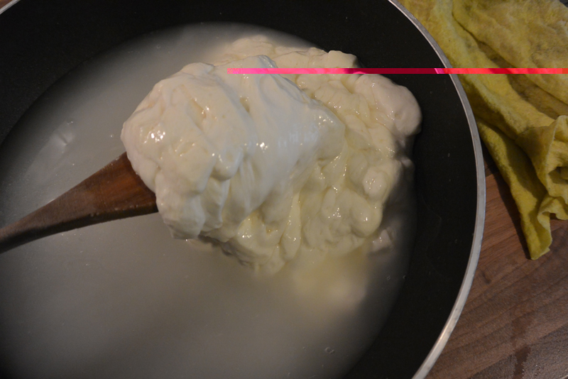 quando sei quasi a filo della cagliata travasala nel ciotolo da filatura